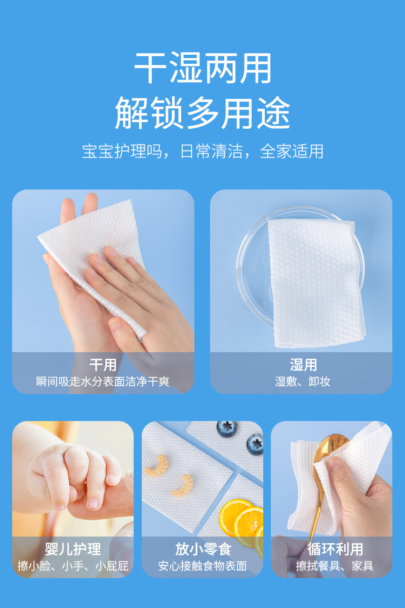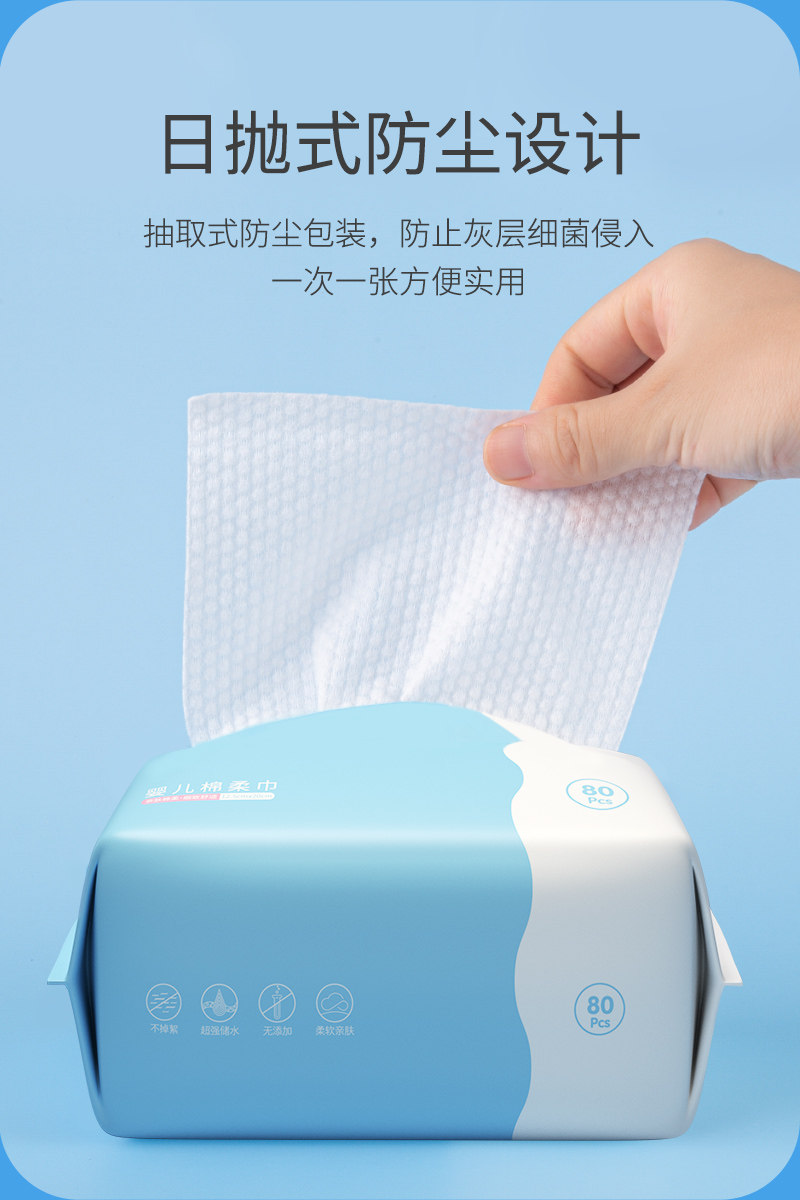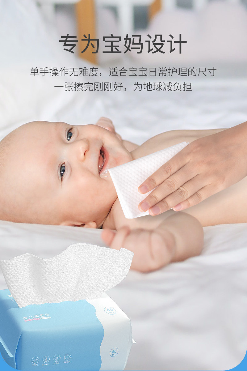 棉柔巾婴儿干湿两用新生儿专用宝宝洗脸巾加大加厚珍珠纹绵柔纸巾