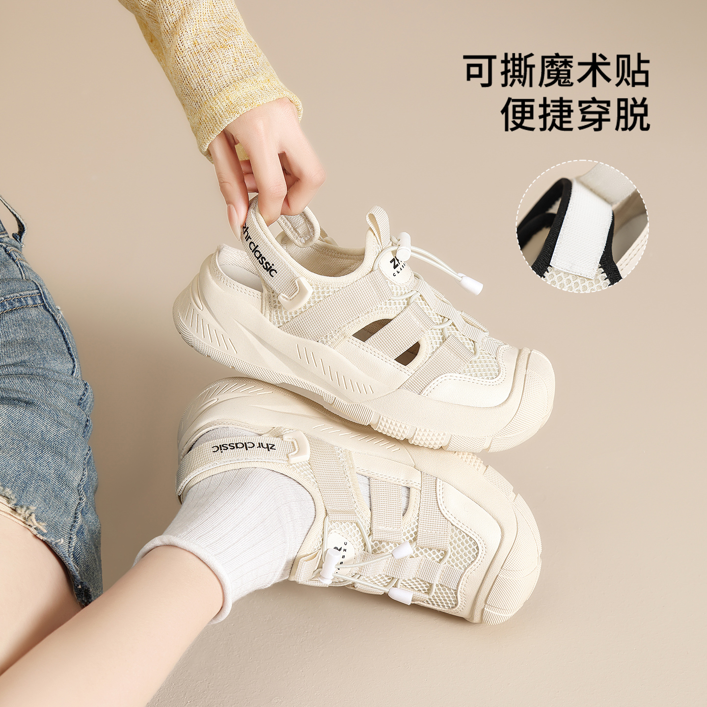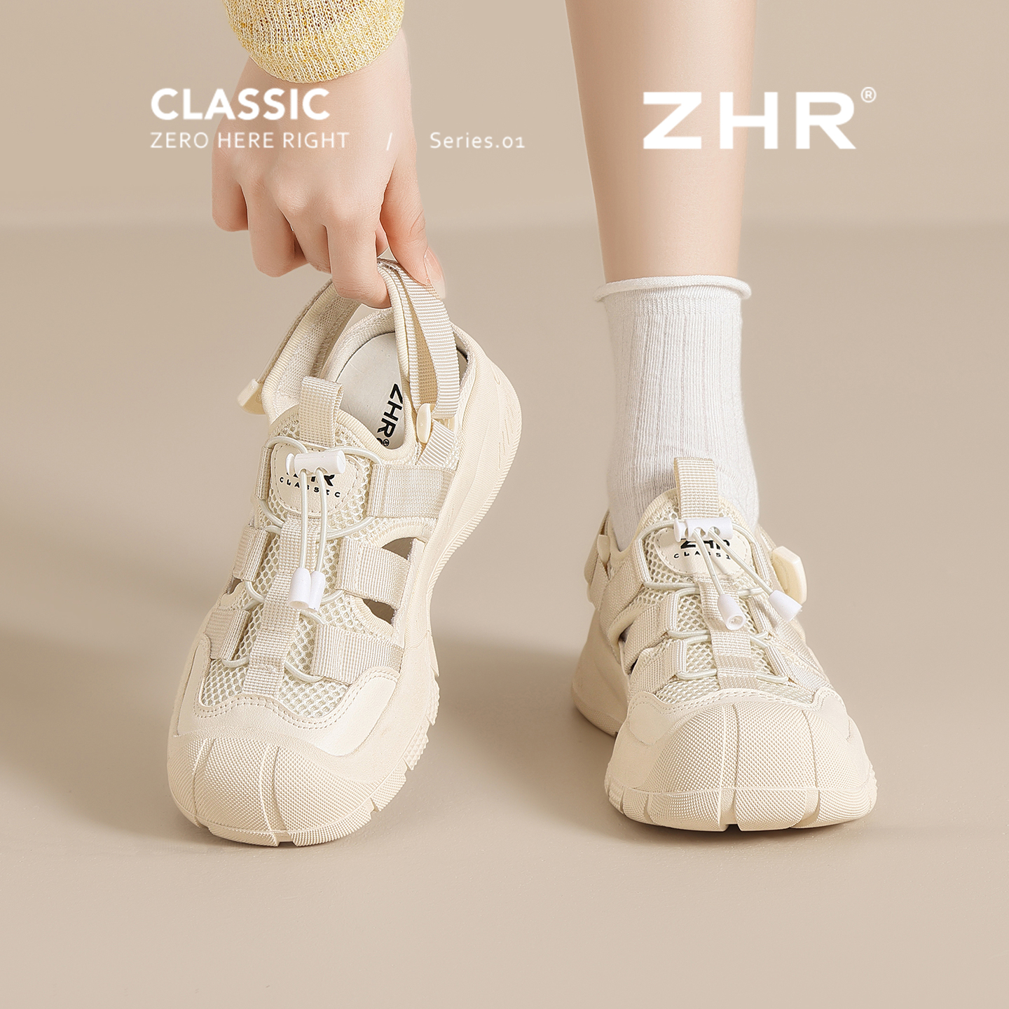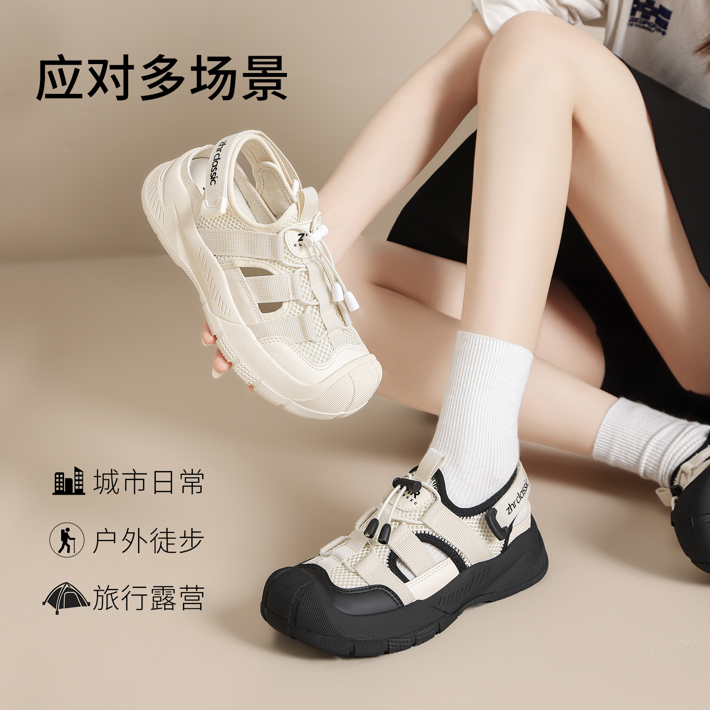 ZHR运动凉鞋女2025夏季新款户外登山鞋镂空软底徒步小白鞋溯溪鞋