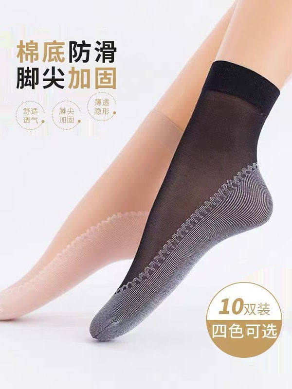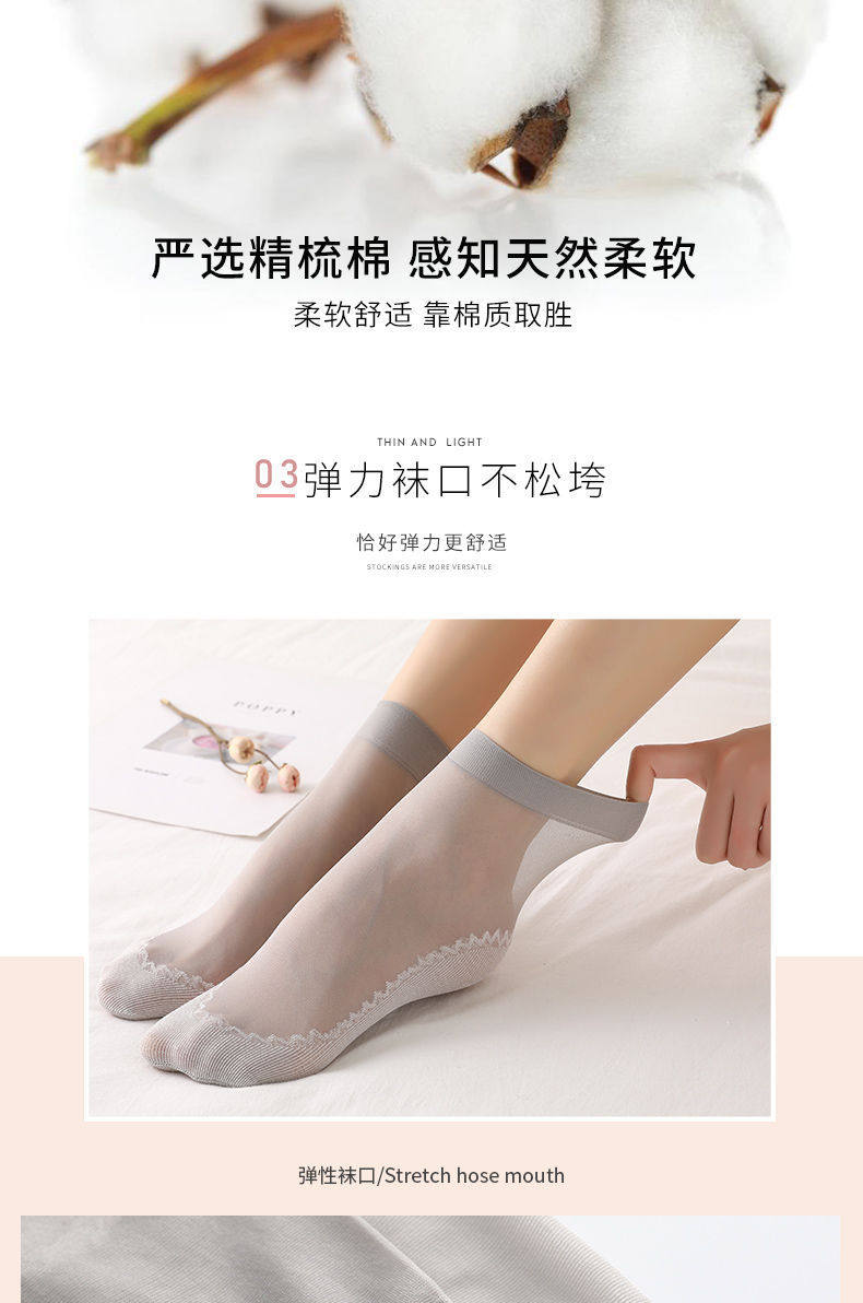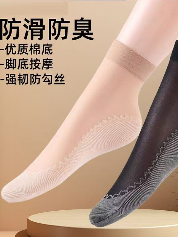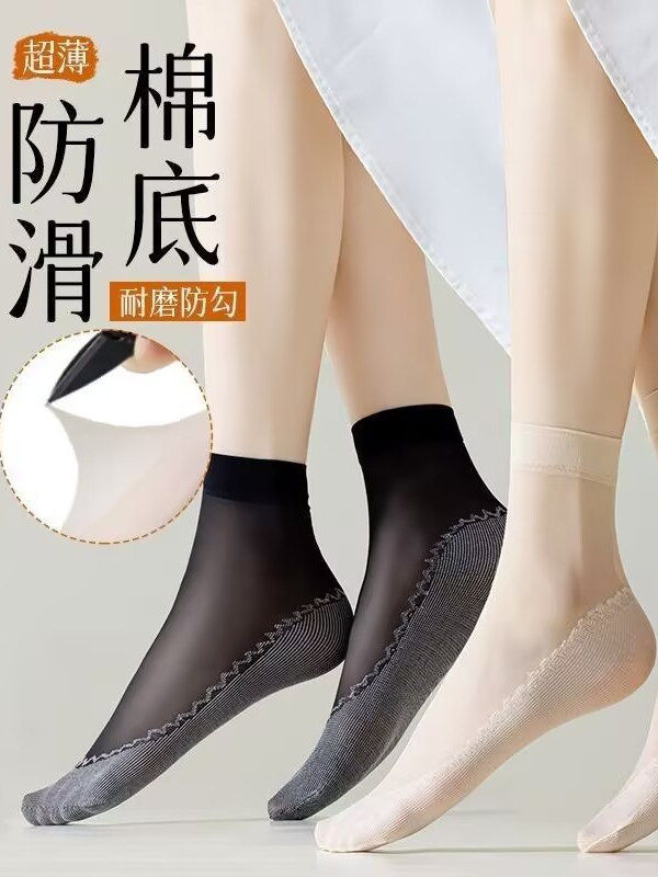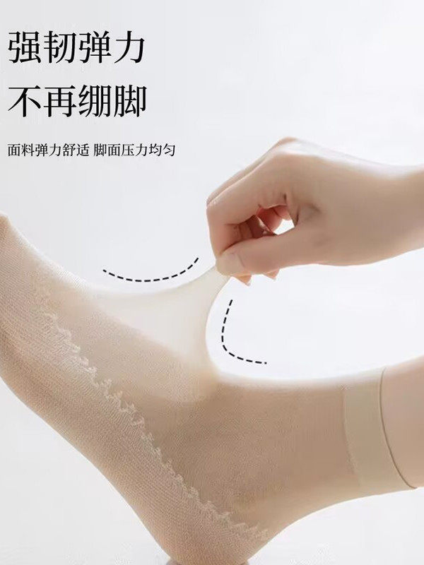 丝袜女薄款春夏棉底防滑水晶丝短袜肉色中老年妈妈穿耐磨中筒丝袜