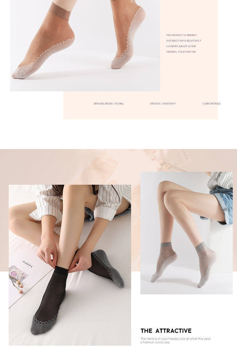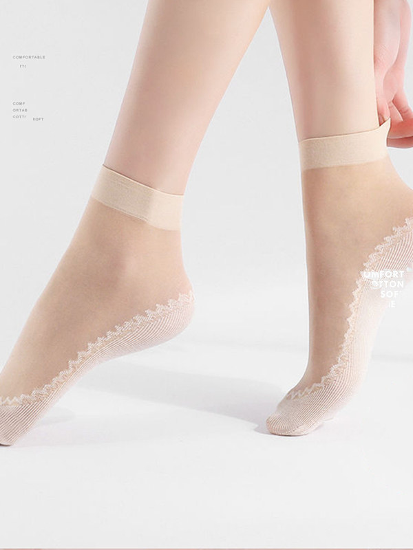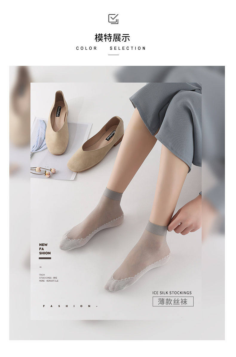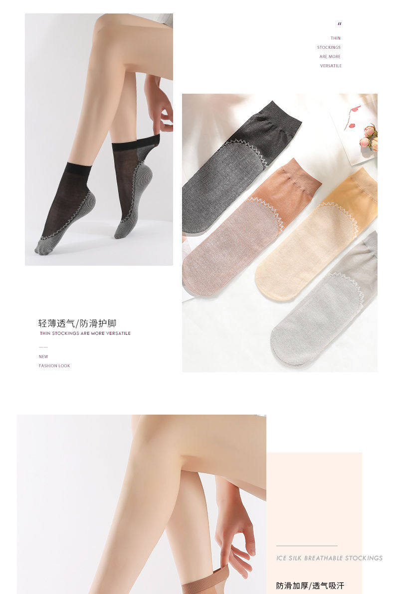 丝袜女薄款春夏棉底防滑水晶丝短袜肉色中老年妈妈穿耐磨中筒丝袜