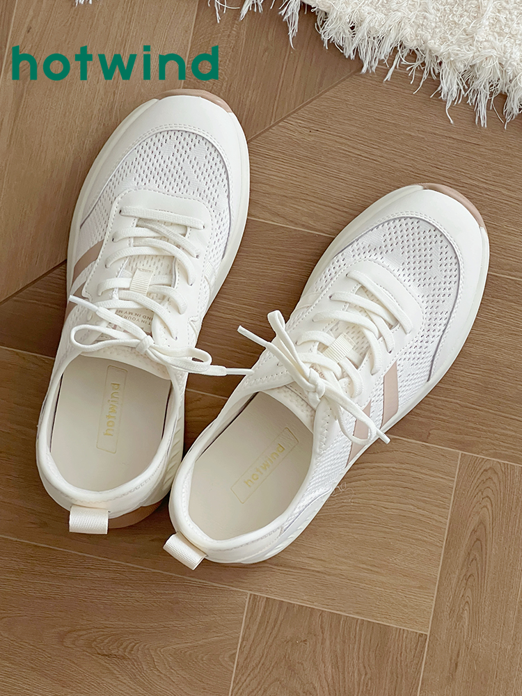 热风网面休闲鞋女款2025年冬季新款厚底透气运动女鞋轻便小白鞋子