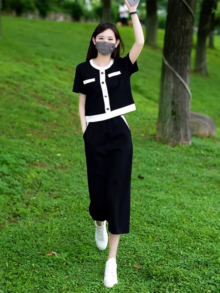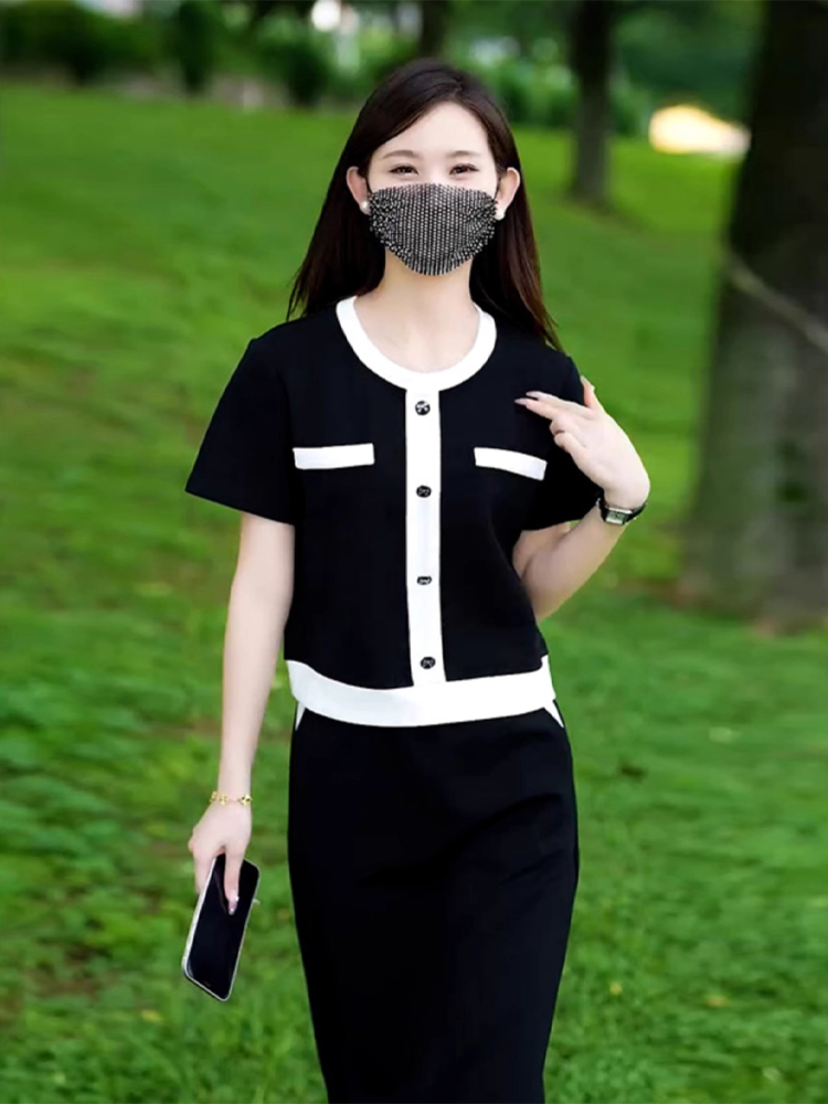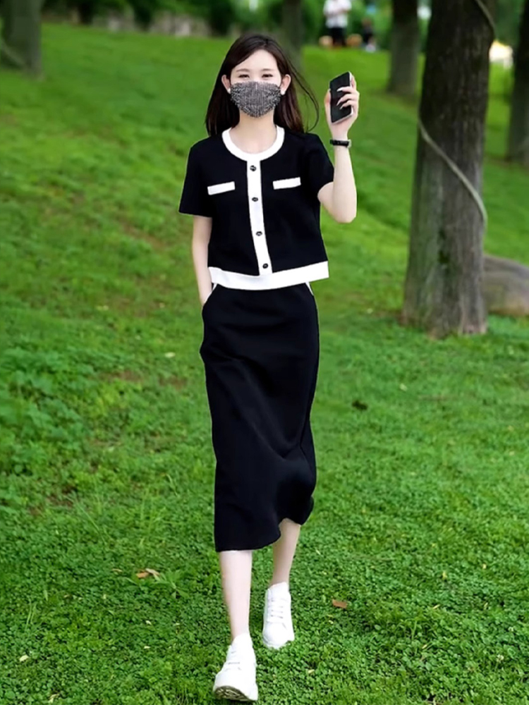 今年流行夏装女装小香风黑色套装裙高级感巨好看的大方得体两件套