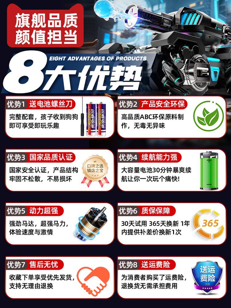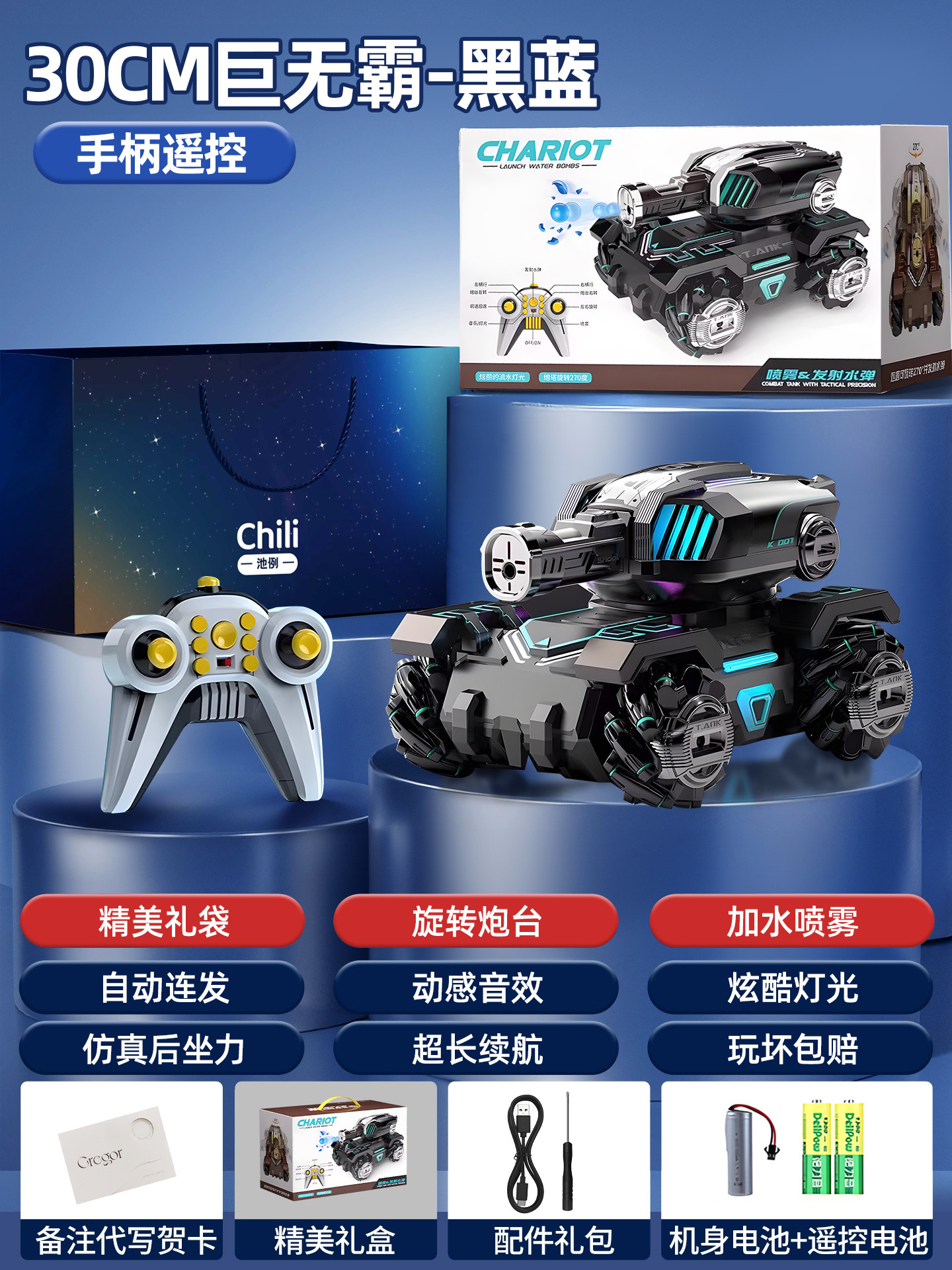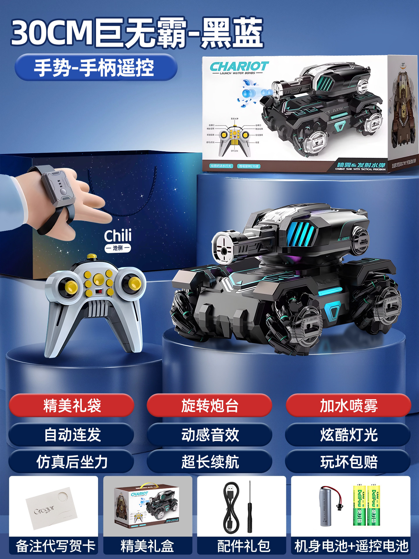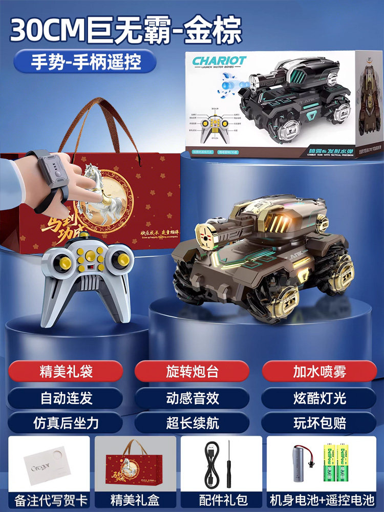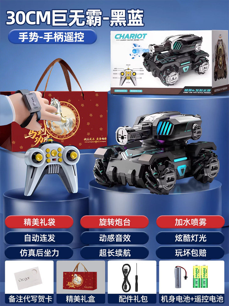 遥控坦克儿童玩具超大号四驱越野车可开炮发射水弹男孩生日礼物品