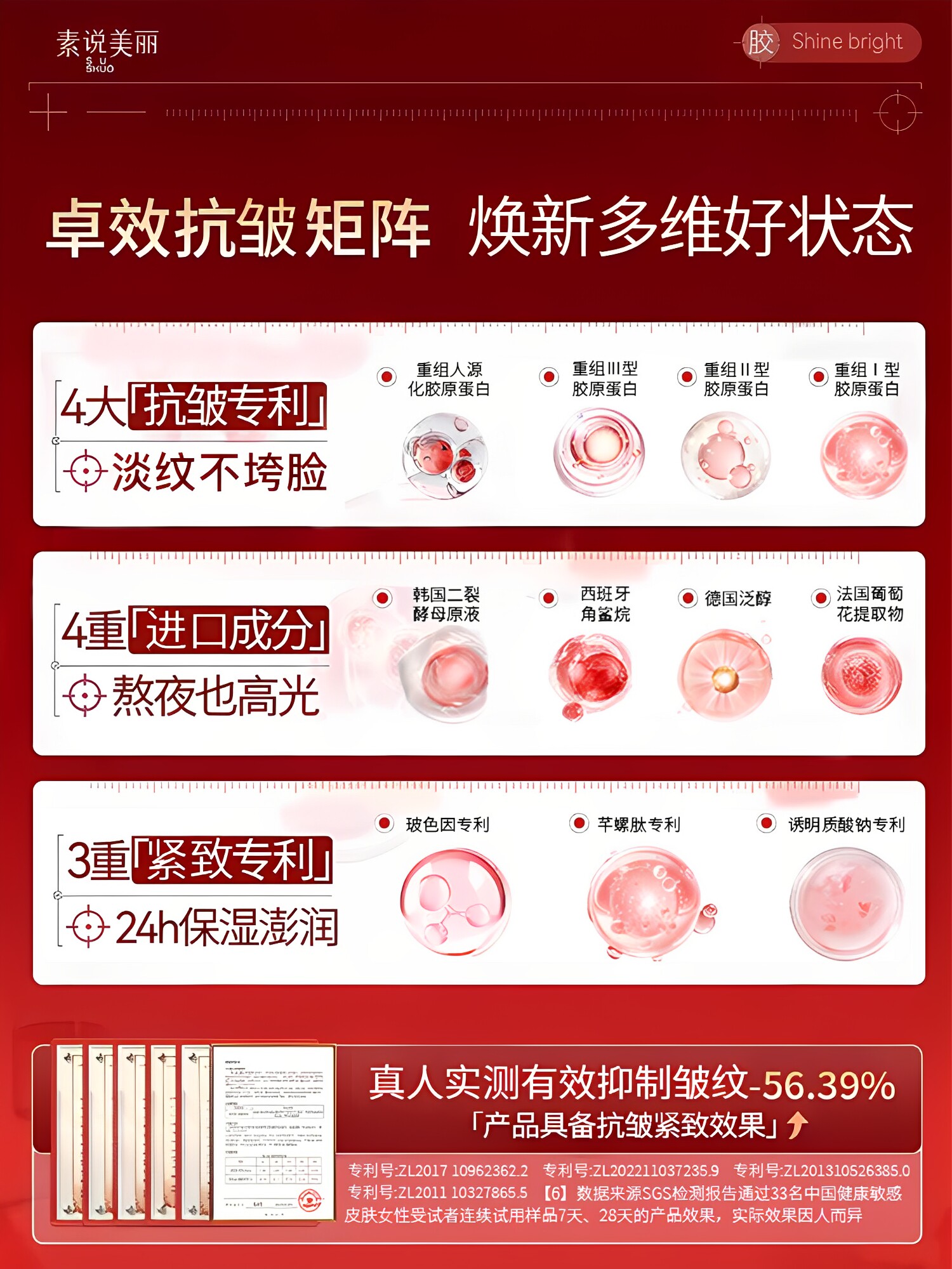 【王琳同款】素说美丽精纯胶原蛋白面膜抗皱紧致保湿补水淡化细纹