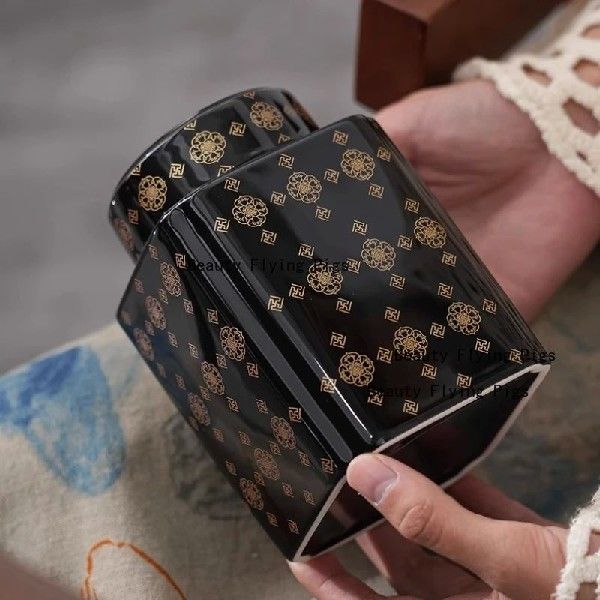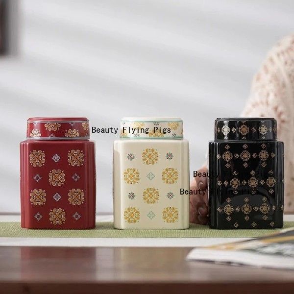 Ceramic Square Tea Jar Chinese Style Household Coffee