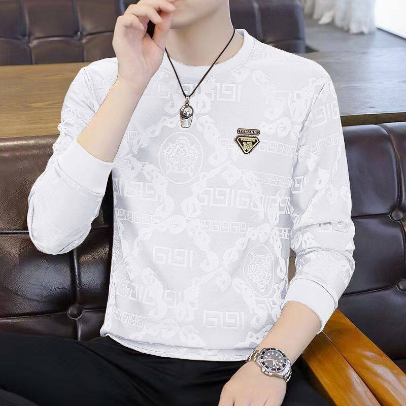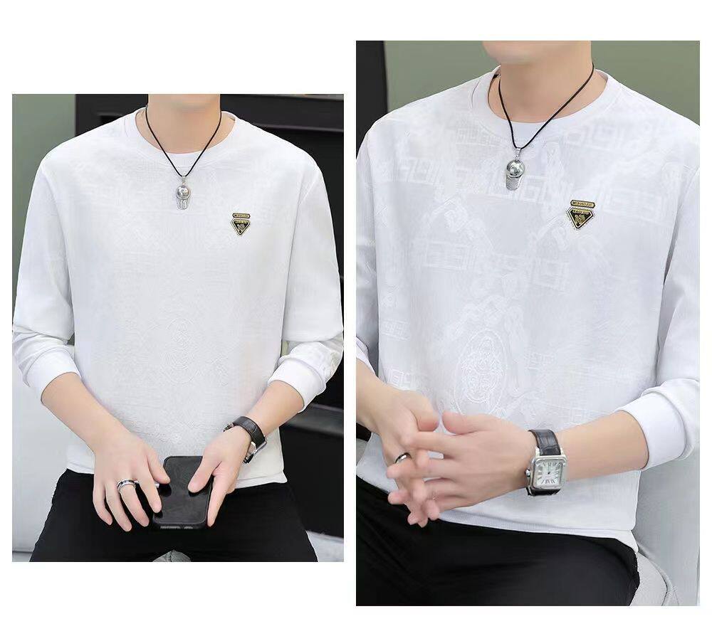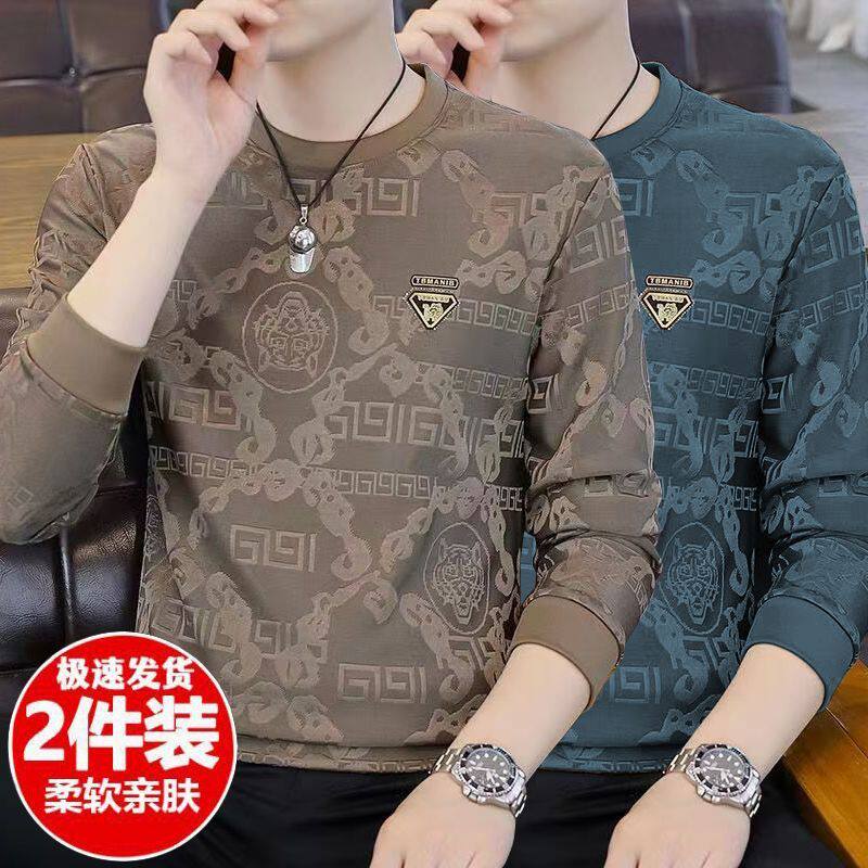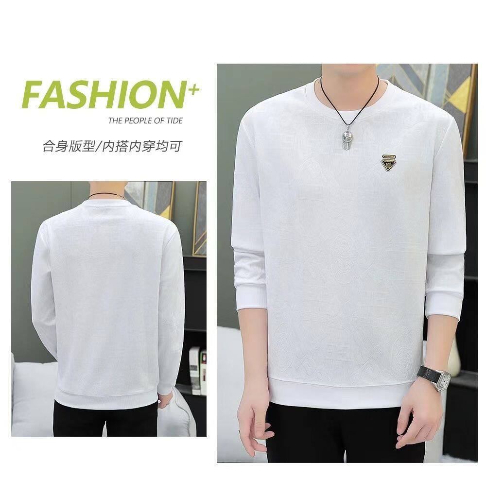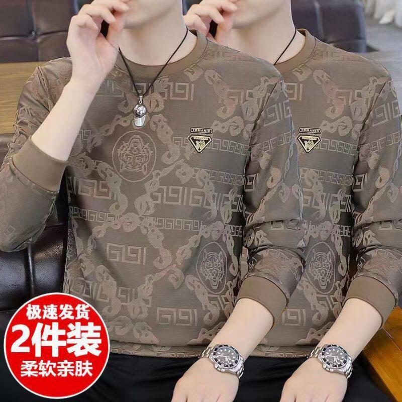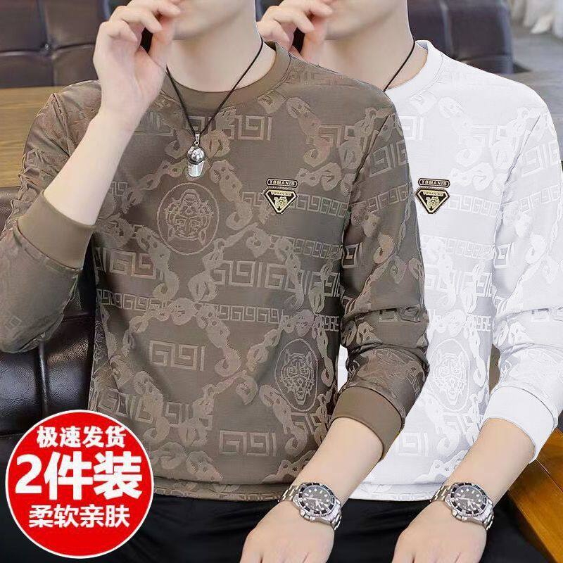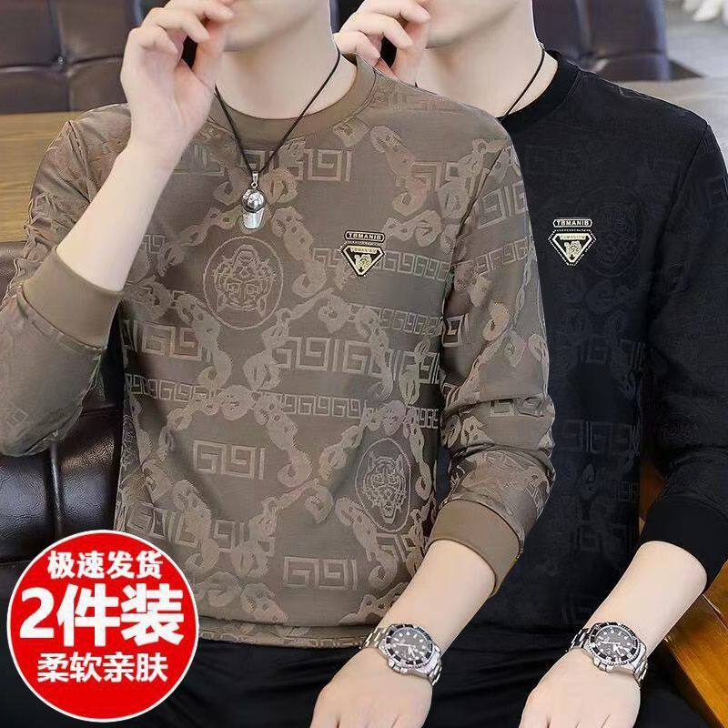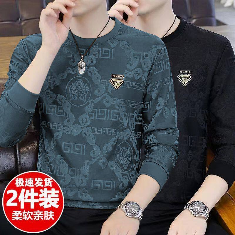 广州十三行高端长袖t恤男春秋新款潮牌休闲宽松男士圆领打底衫潮
