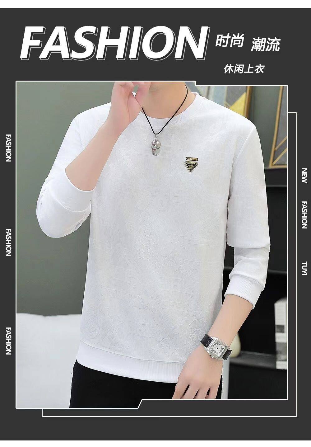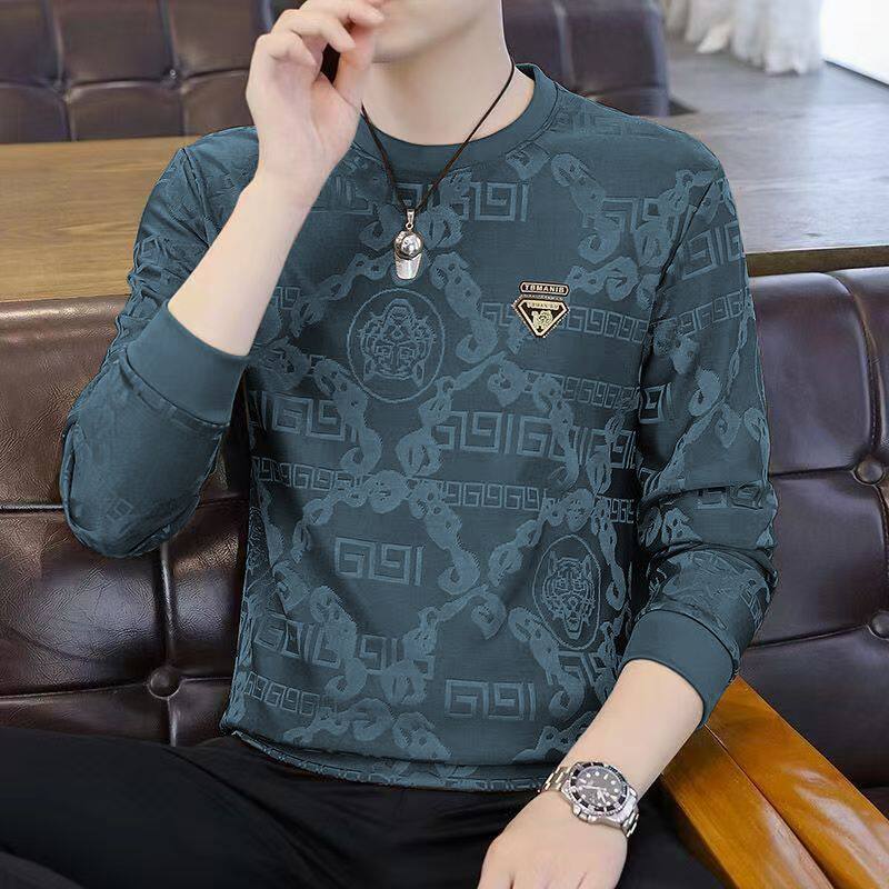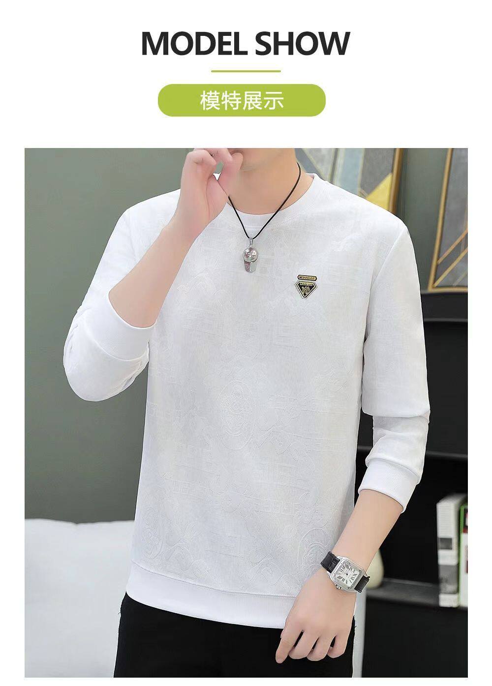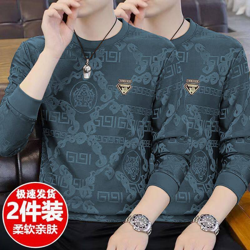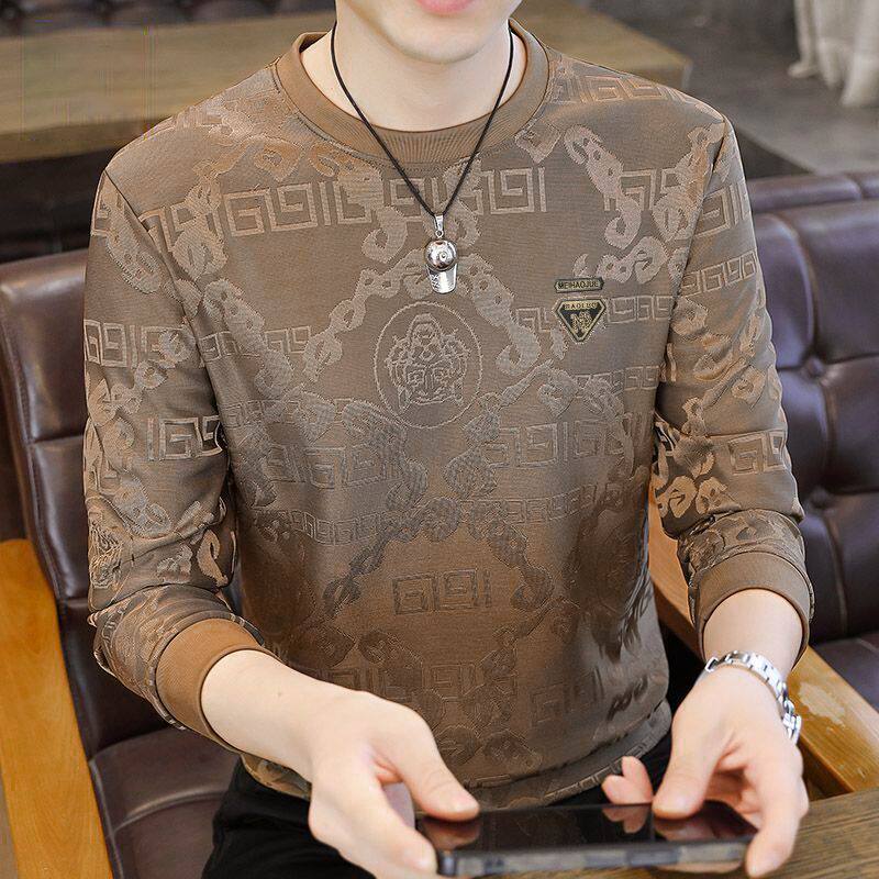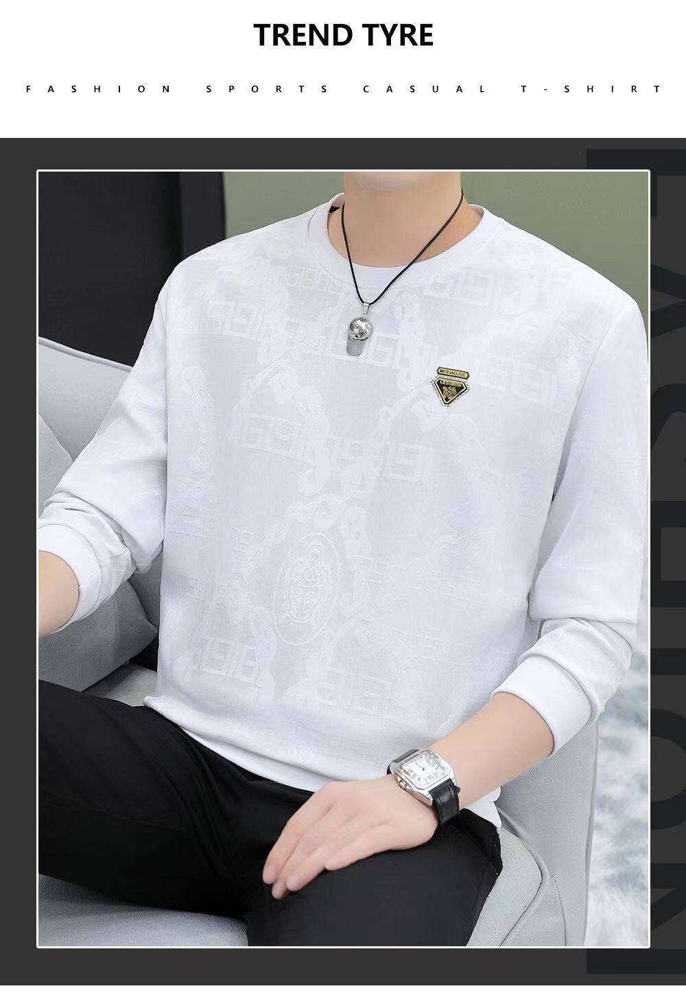 广州十三行高端长袖t恤男春秋新款潮牌休闲宽松男士圆领打底衫潮