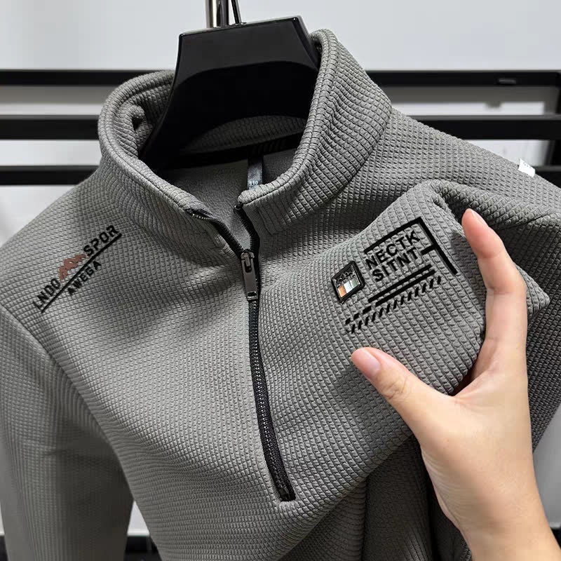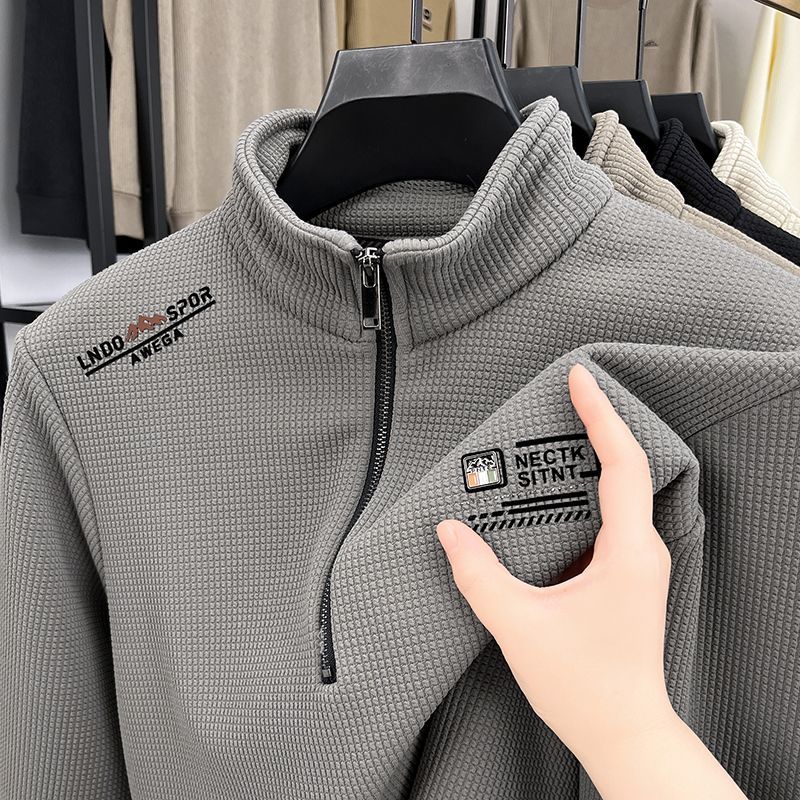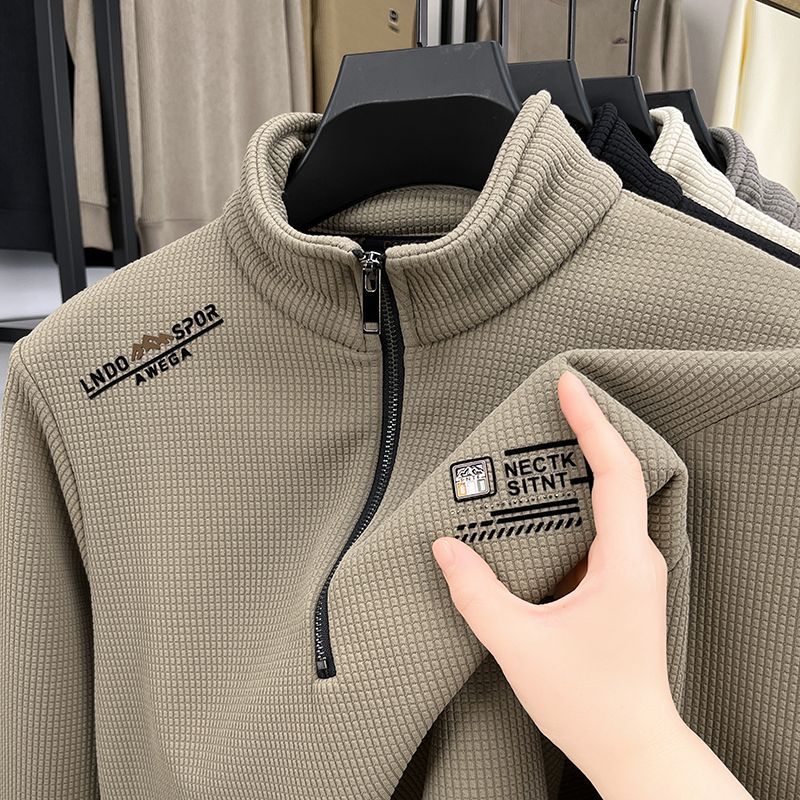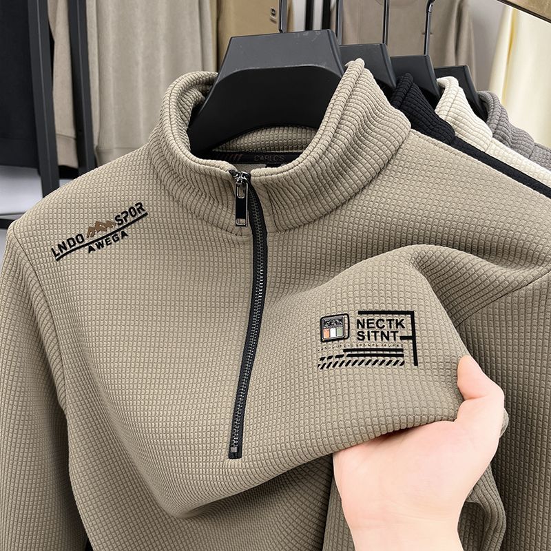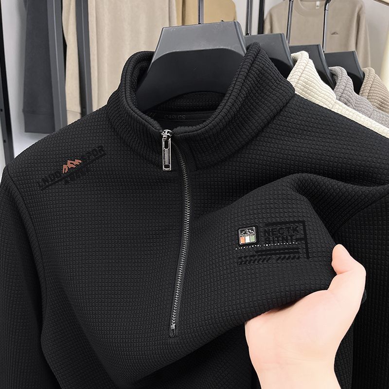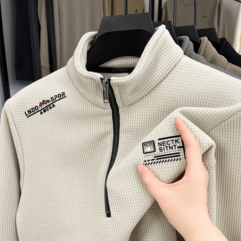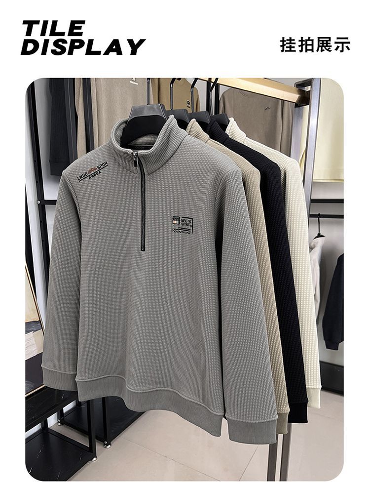 清仓捡漏重磅高档纯色冬季加绒卫衣男士潮流休闲半拉链立领保暖衣