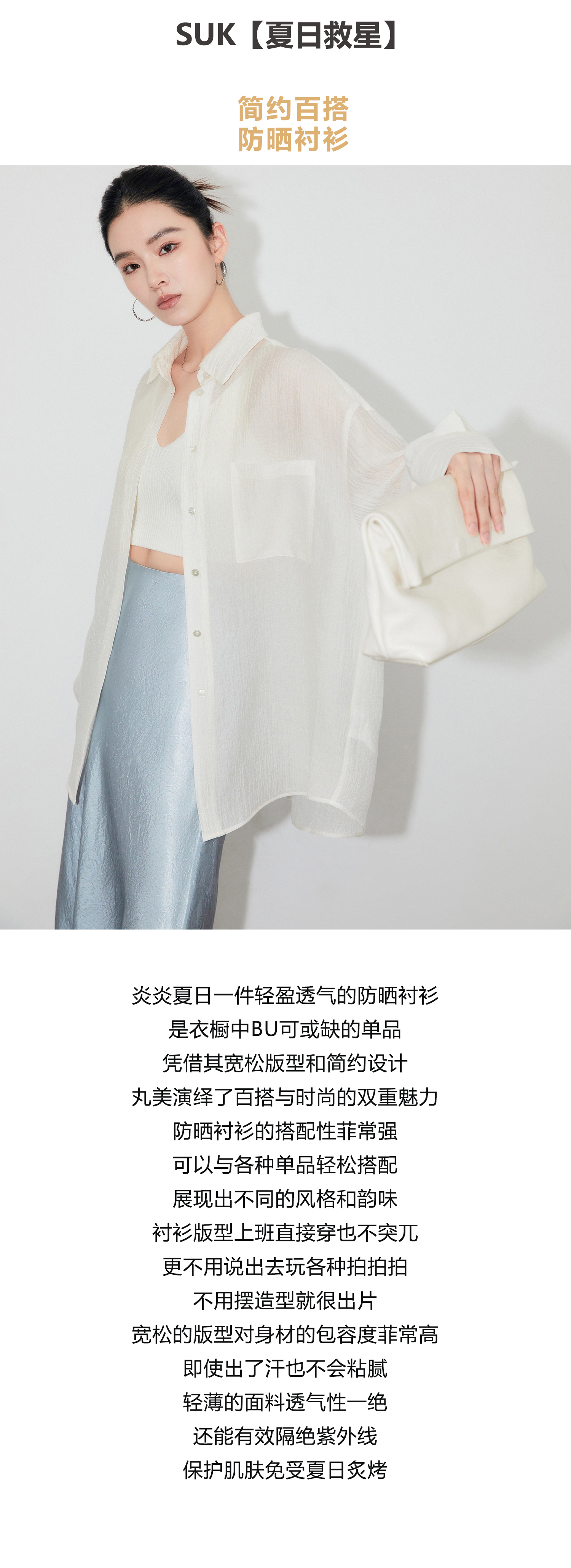 SUK 夏日救星!半透明防晒衬衫宽松百搭显瘦夏季新款时尚女装
