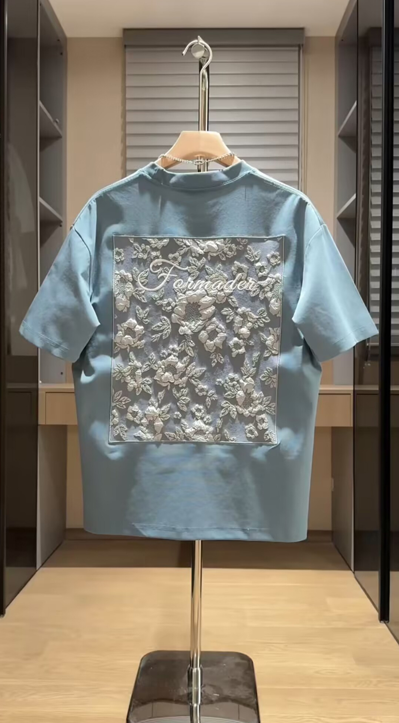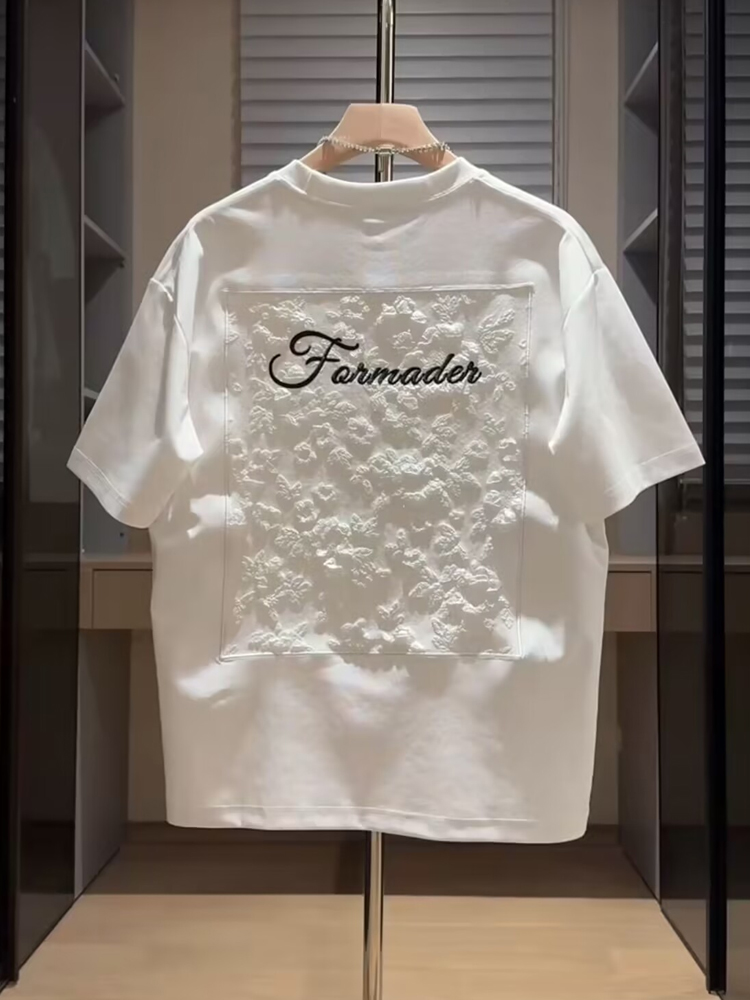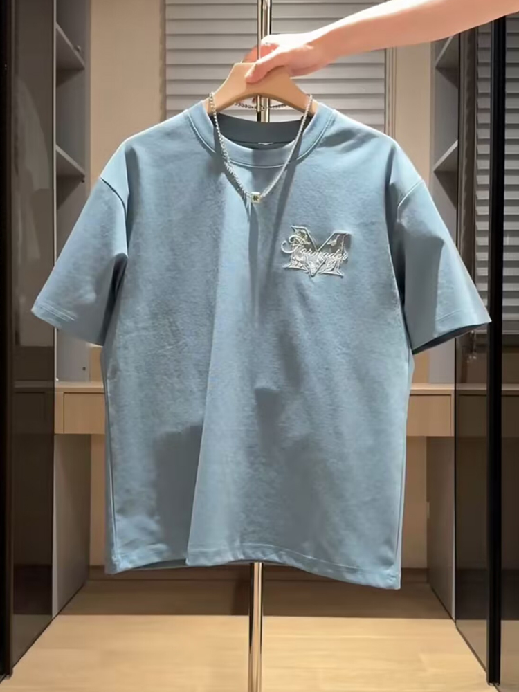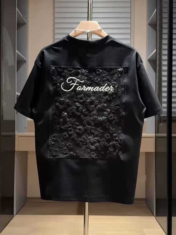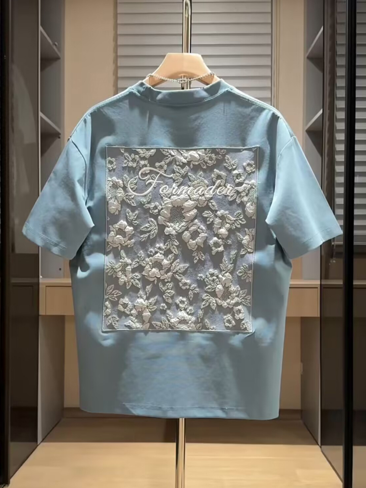 2025夏季新款男士时尚休闲简约短袖T恤百搭浮雕刺绣圆领半袖上衣