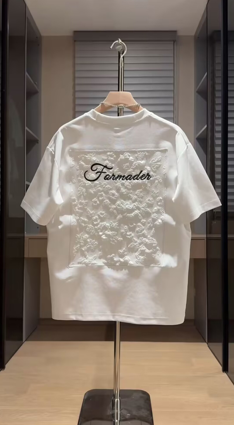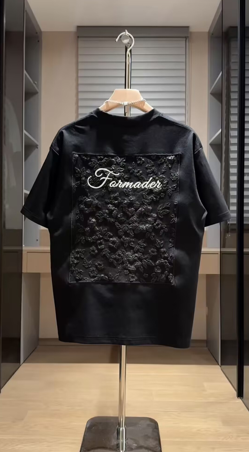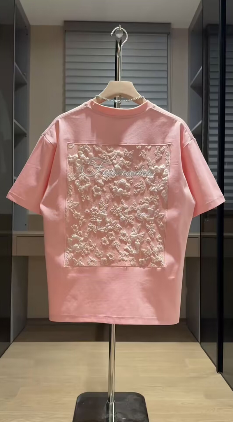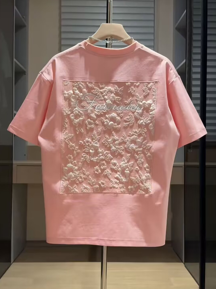 2025夏季新款男士时尚休闲简约短袖T恤百搭浮雕刺绣圆领半袖上衣